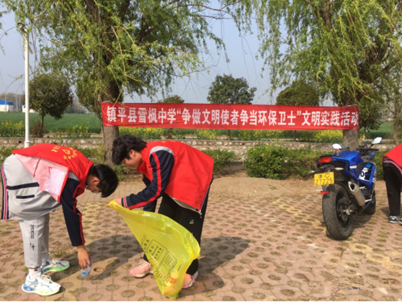 活动结束后,学校学生志愿者对彭雪枫将军故居地面垃圾进行清理,争做文明使者,争当环保卫士。