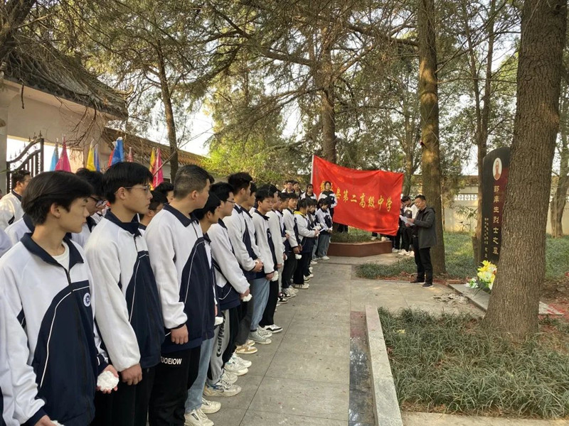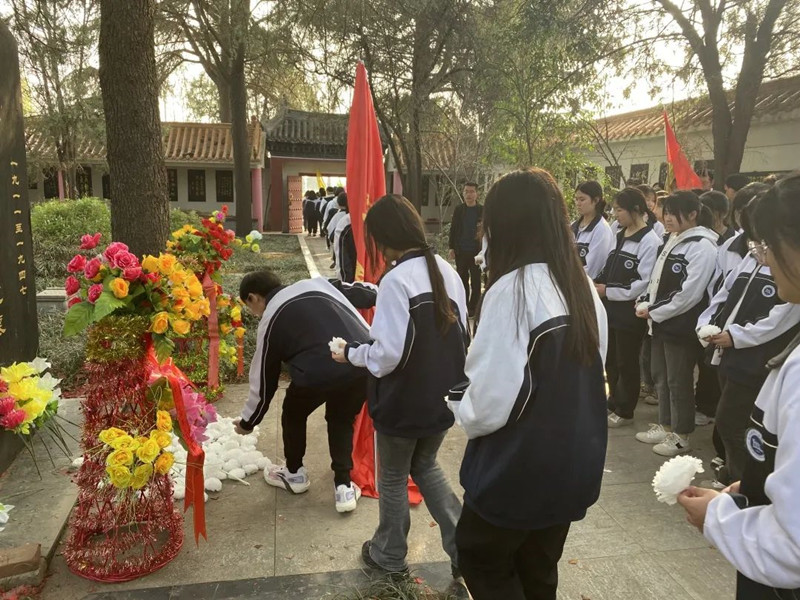 花草芳菲春满园,又是一年清明时。为了使孩子们铭记革命历史,继承红色精神,坚定理想信念,永远跟党走,4月1日上午,镇平二高组织部分高一学生前往镇平县侯集镇郭庠生烈士陵园进行祭英烈活动。