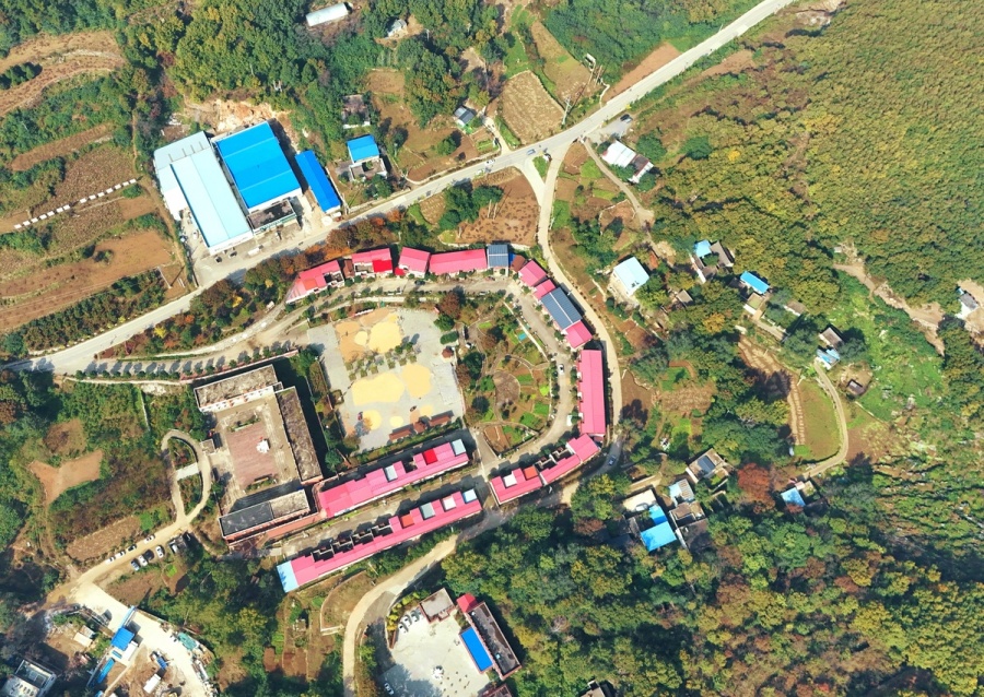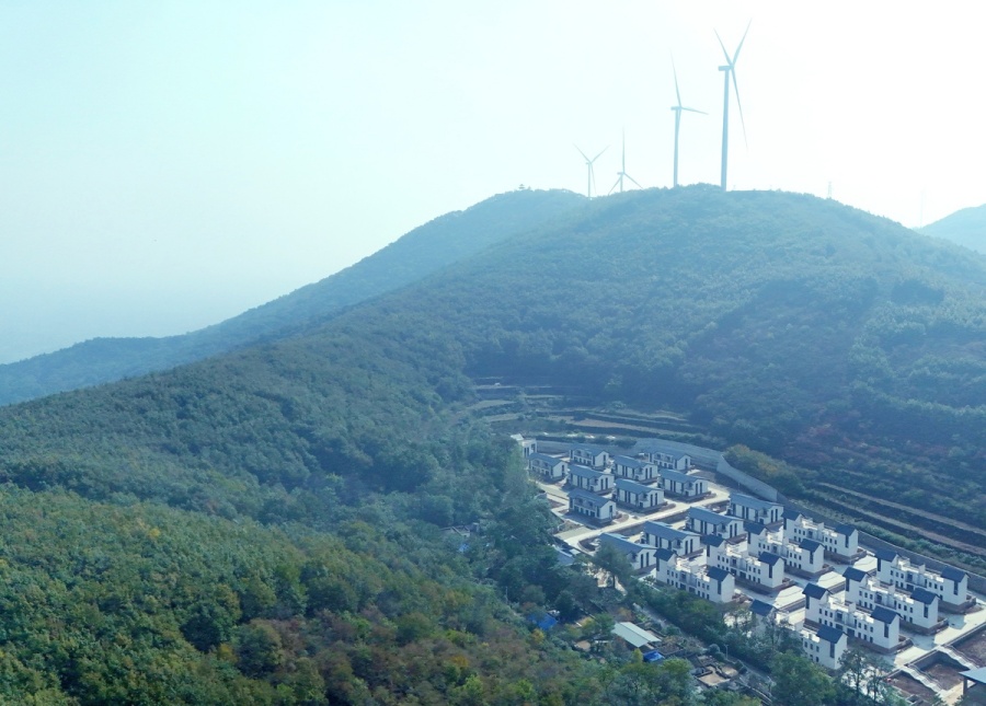 群山、风力发电、易地搬迁幸福新村交相辉映,一幅和美乡村画卷徐徐展开。