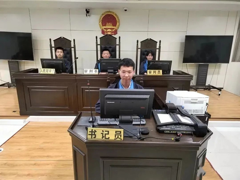 同学们还走上审判台,触摸和感受审判设施,在工作人员的指导下,坐上审判席,郑重地敲响法槌,进行了一场模拟庭审,亲身体验法庭审判的严肃与庄重。