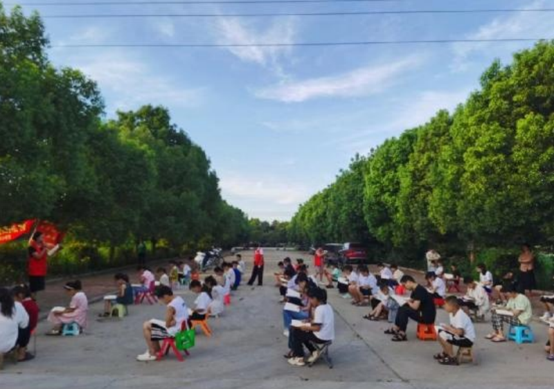7月9日,镇平县高丘镇黑虎庙小学师生早早就来到村头,迎接新乡医学院基础医学院的三下乡社会实践团队志愿支教的“老师们”。