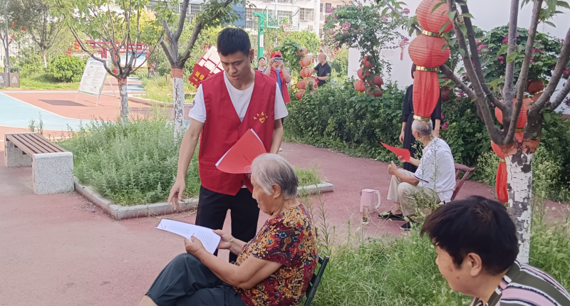 在健康路康茂小区,志愿者向居民讲解《南阳市文明行为促进条例》内容,发放宣传材料,针对遵守公共秩序文明行为规范、遵守社区公共文明行为规范、遵守环境文明行为规范、遵守交通文明行为规范、遵守养犬文明行为规范等与居民生活息息相关的条款进行详细解读。引导社区居民争做文明市民,把《条例》践行在日常、落实在日常,营造“人人有责、人人参与、人人共享”的文明城市创建氛围。