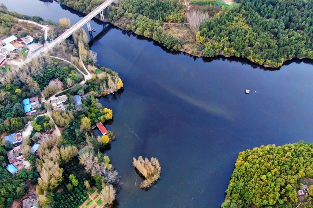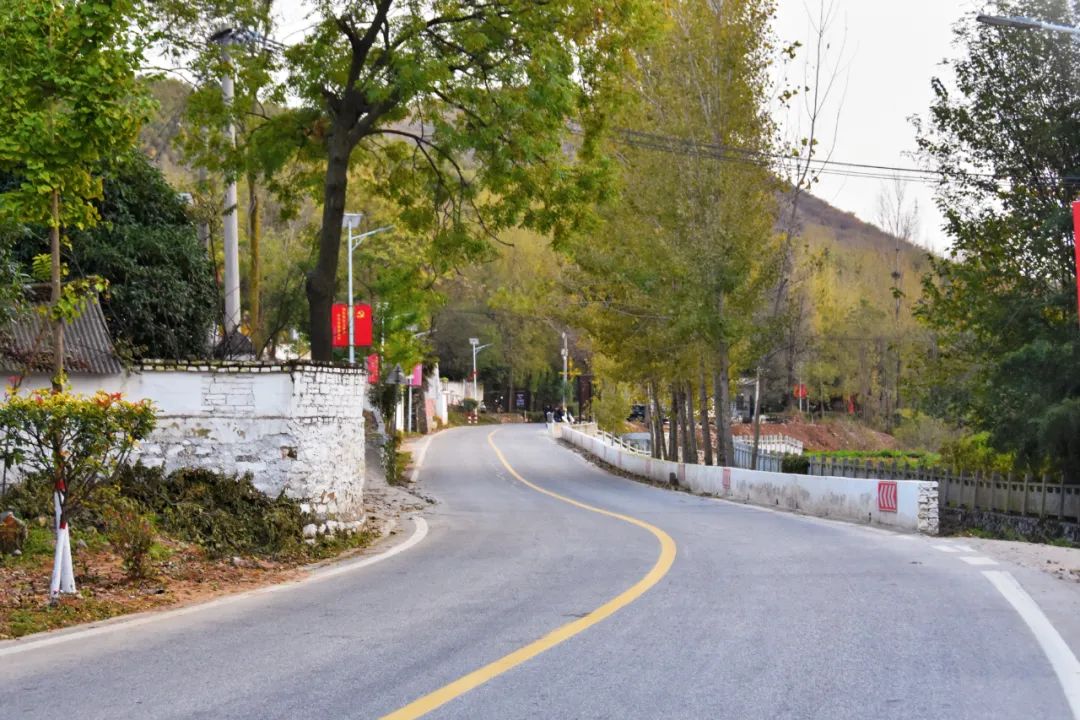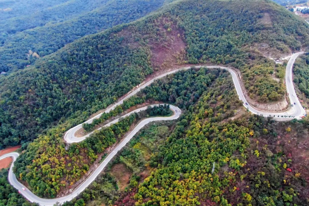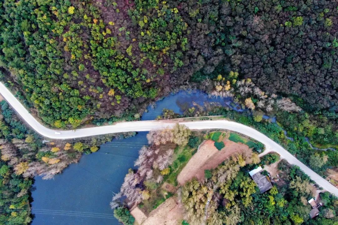 深秋时节,镇平县老庄镇凉水泉村秋景如画,乡村蜿蜒的盘山公路、田园、山峰、错落有致的民居、经霜的红叶,犹如童话般的水和树等相映成景,勾勒出一幅和美的乡村画卷。