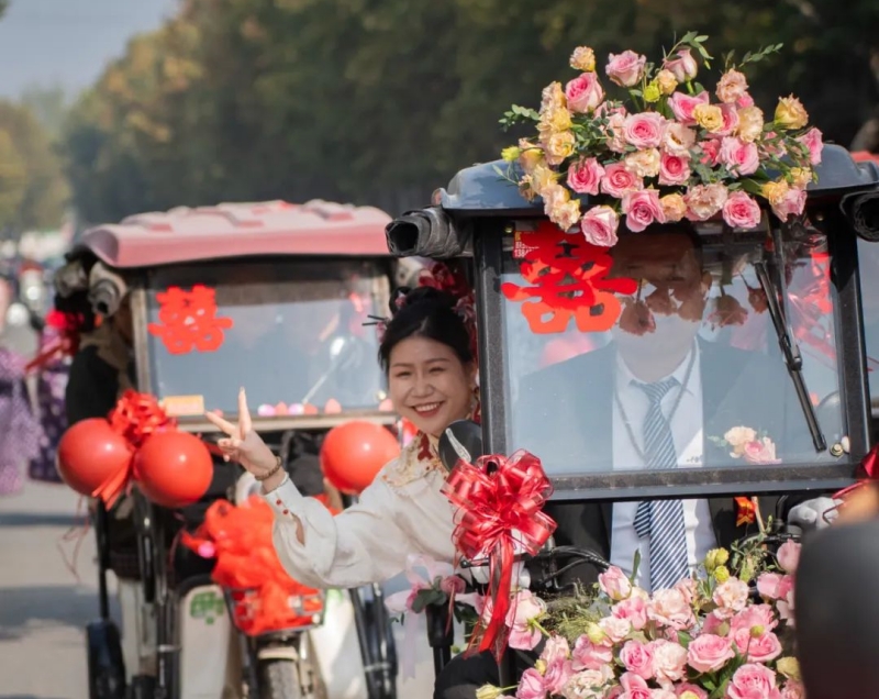 镇平:移风易俗新时尚 三轮车队接亲也浪漫