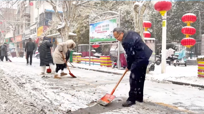 镇平县各级文明单位开展清雪除冰行动