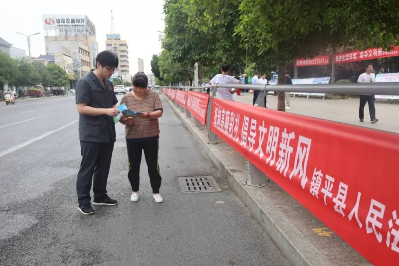 为深入践行新时代“枫桥经验”,加强婚姻家事纠纷的诉源治理工作,有效预防涉高额彩礼纠纷,6月5日上午,镇平县人民法院开展“抵制高额彩礼 倡导文明新风”普法宣传活动。