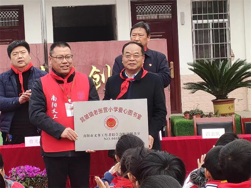 镇平老张营小学举行“爱心书屋”捐赠仪式