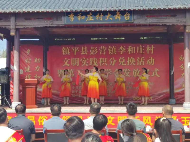 8月21日,镇平县彭营镇李和庄村大舞台前热闹非凡,文明实践积分兑换活动暨第五届奖学金发放活动在这里举行。