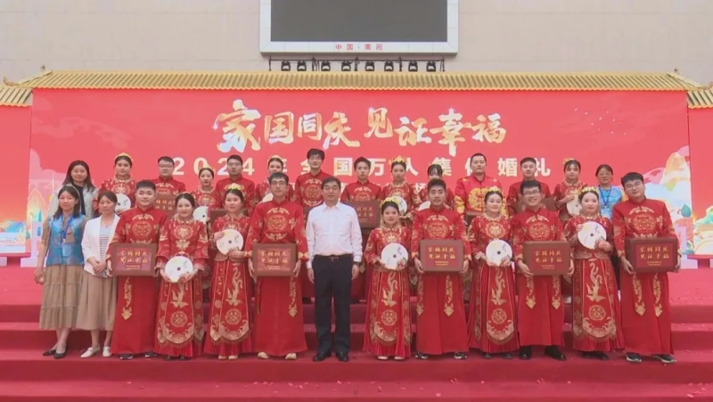共庆祖国华诞,同证百年之好。9月22日,“家国同庆 见证幸福”2024年全国万人集体婚礼举行,在南阳分会场上,来自镇平县的11对新人在传递喜悦和幸福的同时,也用实际行动传播着时代新人的新气象和新风尚。