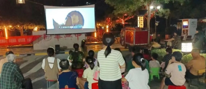 镇平县电影公司挑选休闲与主流兼具的影片,以巡回放映的模式,借助村文化广场或群众喜欢扎堆的地方逐村展映。利用“影前十分钟”的时间播放全国各地关于移风易俗的微短片,使群众在寓教于乐中认清高额彩礼、大操大办、铺张浪费等陈规陋习所产生的恶劣影响,推动群众自觉践行“婚事新办、丧事简办、余事不办”的文明新风尚,共同营造风清气正、文明节俭的社会风气。