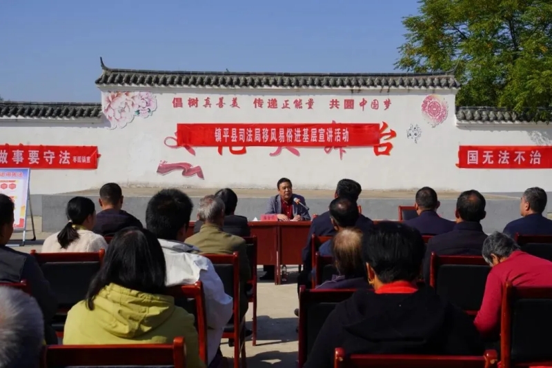 为进一步增强群众法治观念,深入推动移风易俗,促进乡风文明和社会和谐,10月24日,镇平县司法局组织普法讲师团走进枣园镇蒋刘洼村开展移风易俗进基层宣讲活动。