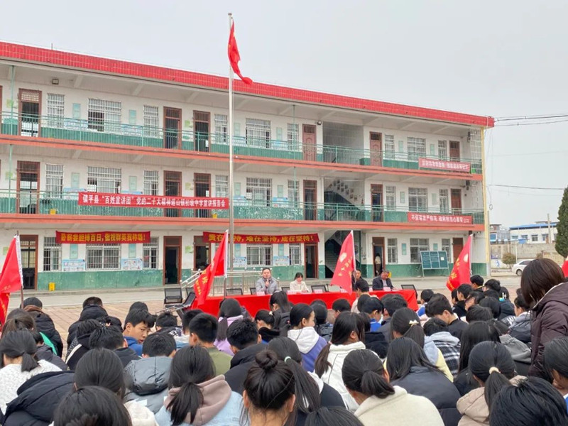 3月24日,镇平县“百姓宣讲团”党的二十大精神宣讲报告会在该县遮山镇初级中学举行,进一步深入学习宣传贯彻党的二十大精神,教育广大青少年立志做有理想、敢担当、能吃苦、肯奋斗的新时代好少年。